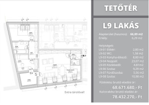 2.emelet L9 lakás: 66,89 m2, nappali +2 szobás lakás,+ 6,29 m2 erkély, fütéskész . br ár 68.671.680 Ft