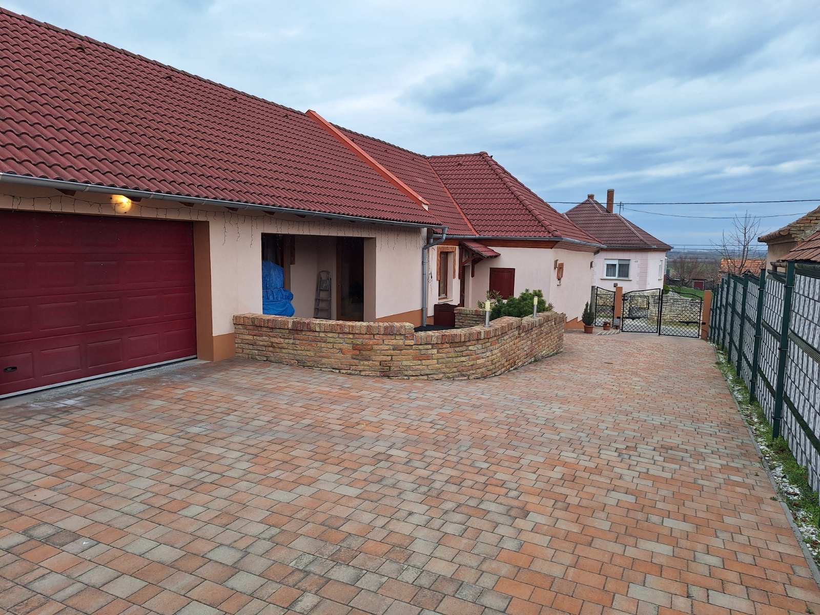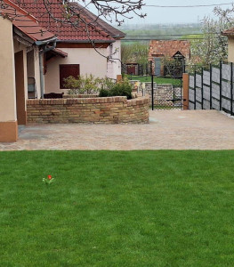 - 250m2 térkő a garázsig.